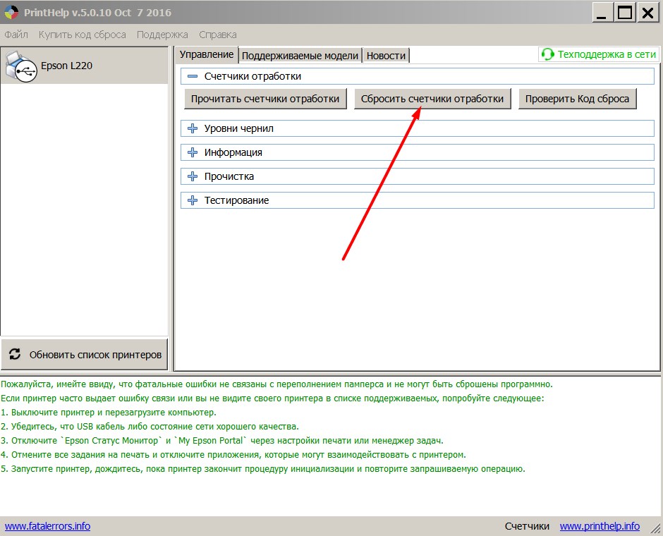 Ну а пока - можно пользоваться простой и удобной утилитой PrintHelp для сброса "памперса" в струйных принтерах Epson в т.ч. и в L110, L210, L300, L350, L550 моделях.